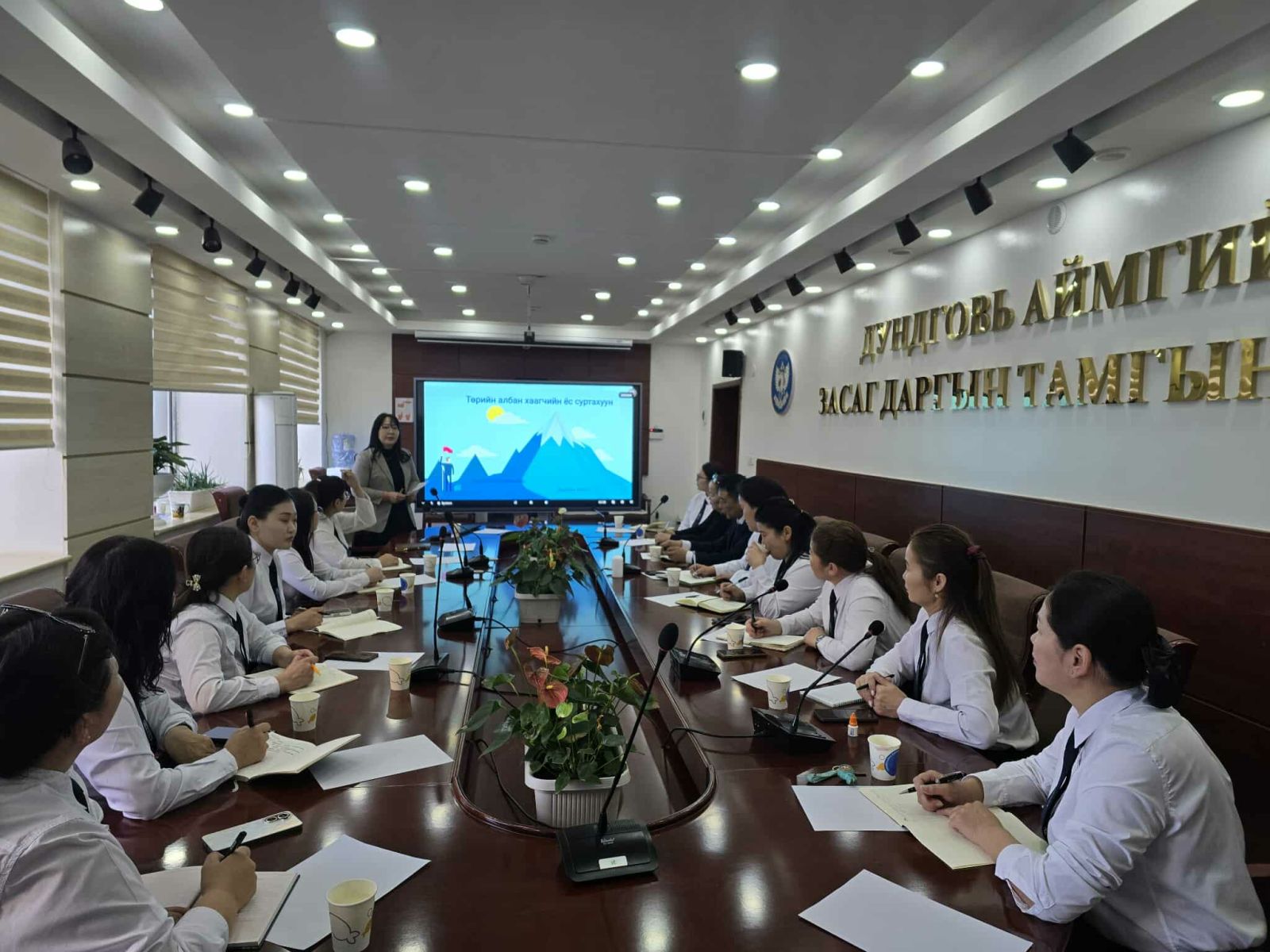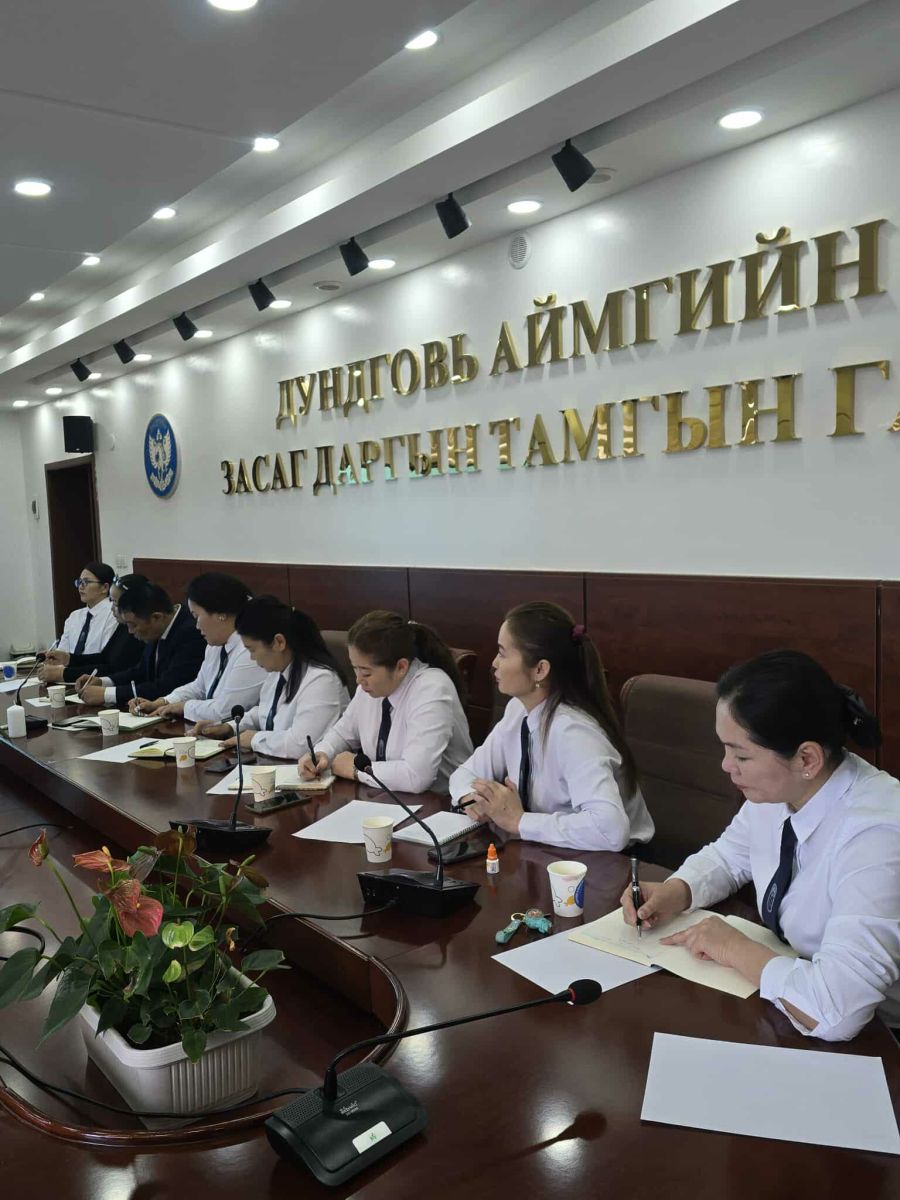 Монгол Улсын Ёс зүйн хорооны сургагч багш, Дундговь аймгийн улсын бүртгэлийн хэлтсийн дарга Ж.Өлзийжаргал хэлтсийн 23 албан хаагчдад зориулан “Төрийн албан хаагчийн ёс зүй, ёс зүйн зөрчлөөс урьдчилан сэргийлэх” сэдэвт цахим болон танхим хосолсон сургалтыг зохион байгуулжээ. Сургалтаар ёс зүйн зарчим, зөрчлөөс урьдчилан сэргийлэх арга зам, бодит жишээ, кейс хэлэлцүүлгийг танилцуулж, мэдээлэл хүргэсэн байна.