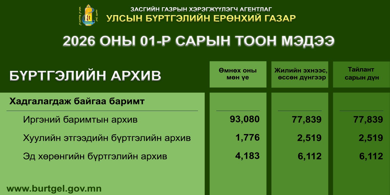 Улсын бүртгэлийн нэгдсэн архив