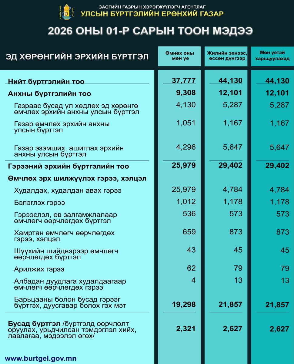 Улсын бүртгэлийн үйл ажиллагаанд мөрдөх эрх зүйн актууд