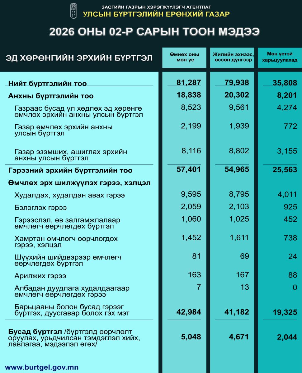 Улсын бүртгэлийн үйл ажиллагаанд мөрдөх эрх зүйн актууд