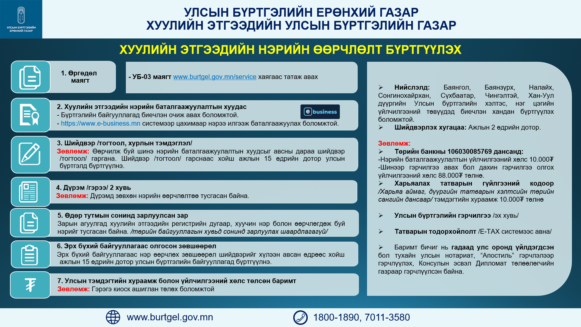 Нэрээ авснаас хойш 30 хоногт бүртгүүлэх хуультайг анхаарах